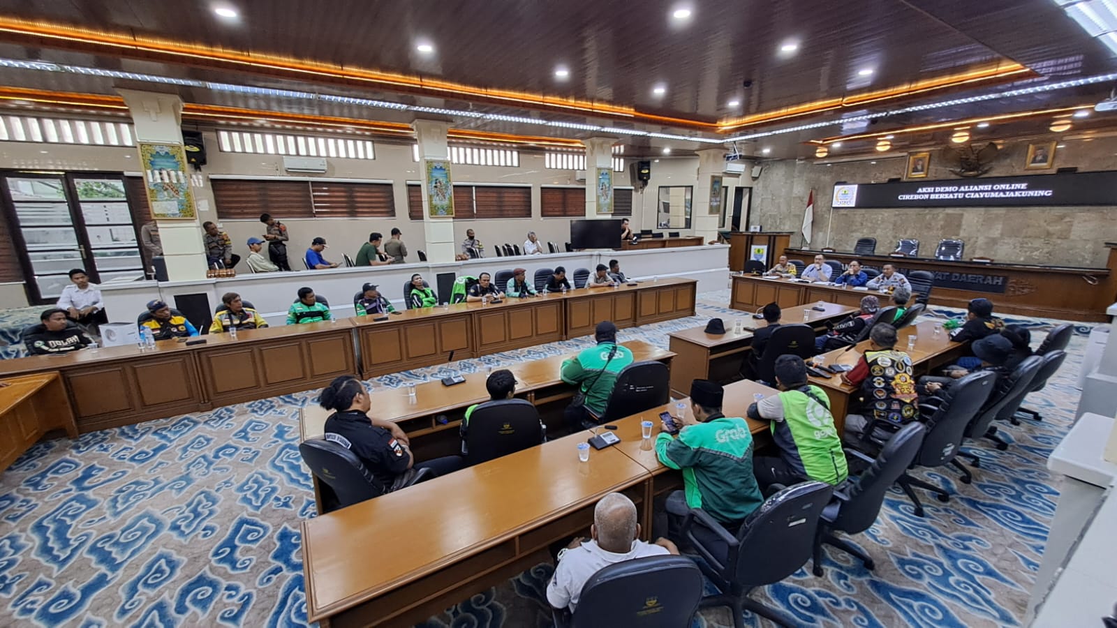 CirebonersID – DPRD Kota Cirebon menerima aspirasi tuntutan dari para pengemudi ojek online di Griya Sawala gedung DPRD, Rabu (11/9/2024).